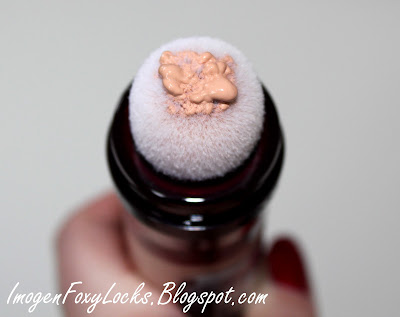 It comes with a large round (furry) sponge tip applicator, you need to click the tube quite a few times before any product comes out. The application is soft, it's a little streaky and needs to be done carefully.